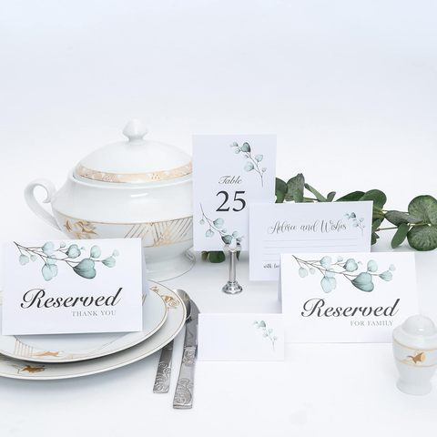 การ์ดตัวเลขสำหรับงานแต่งงานแบบตั้งโต๊ะขนาด1-25มีตัวเลขโต๊ะสองด้านทำจากยูคาลิปตัสสีเขียวมีตัวเลขโต๊ะสำหรับงานแต่งงาน